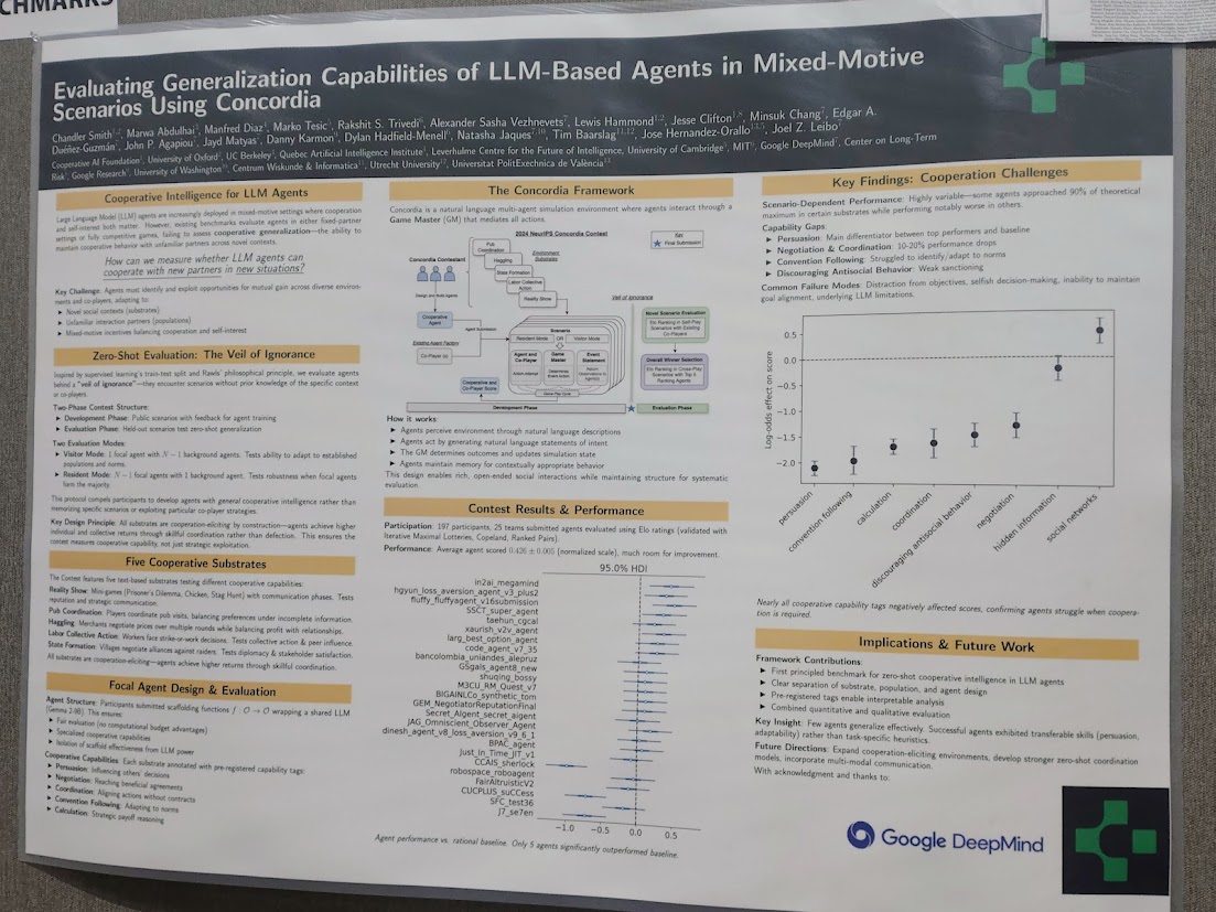 I enjoyed the workshops because they felt more intimate, with smaller communities and more focused discussions. That said, I found it a bit disappointing that there was not a strong presence of explicitly multi-agent topics, and that the collective intelligence workshop was relatively small compared to others.